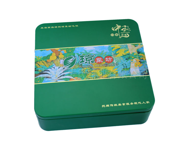 此款食品鐵皮盒子,具中國民間特色的鐵盒包裝產品,其濃郁的現代化設計,創意新穎的的色彩搭配方式,更適合新迎年輕人的送禮習慣,是月餅包裝的佳選擇!鐵盒材質為鍍錫馬口鐵制成,具有優異的防潮防熱等特點,較強的密封性能,確保包裝食品可長期在外流通,將原有的食品風味送到消費者口中。