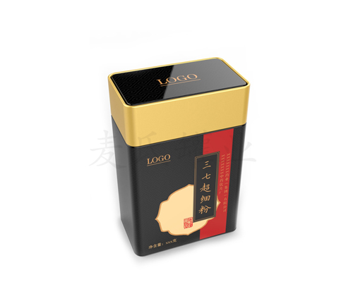 該款珍珠粉長(zhǎng)方形鐵盒,滇制何首烏粉鐵盒包裝尺寸:85*57*112mm,顏色:金黑色,材質(zhì)為0.23鍍錫馬口鐵,印刷精美別致,堅(jiān)固耐用,是大型馬口鐵盒生產(chǎn)廠家!珍珠粉長(zhǎng)方形鐵盒定制熱線13824942539